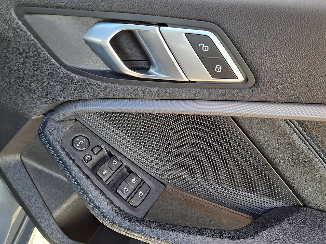 • Perforated Dakota Leather - Black with Blue Highlight